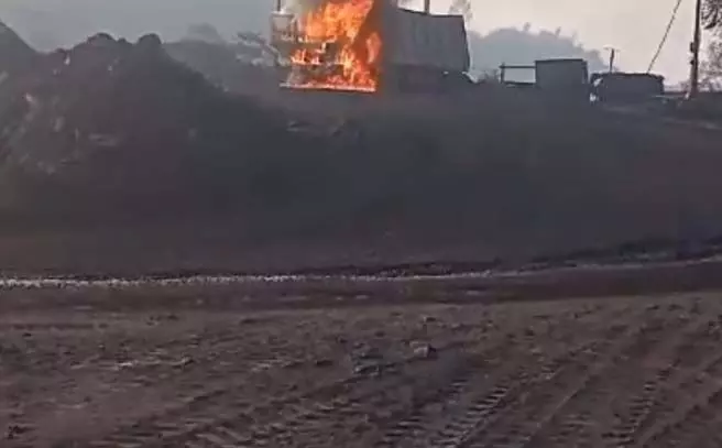 कोरबा। मानिकपुर कोल साइडिंग में कोयले से लदे एक ट्रेलर में आग लगने से बुधवार को हड़कंप मच गया। कोयला डंप करने के दौरान ट्रेलर के केबिन में आग भड़क उठी, जिससे वाहन पूरी तरह जलकर खाक हो गया।