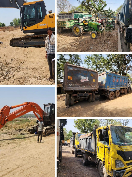 जांच के दौरान टीम को कई स्थानों पर नियमों के विपरीत रेत का परिवहन, अवैध भंडारण और अवैध उत्खनन करते हुए पाया गया। कार्रवाई में कुल 20 वाहन/मशीनें जब्त की गईं, जिनमें 05 ट्रैक्टर, 06 टिप्पर, 04 हाईवा, 01 हाईवा (अवैध भंडारण में), 02 चैन माउंटेन मशीनें (अवैध उत्खनन में), 01 हाईवा और 01 ट्रेलर (गिट्टी के अवैध परिवहन में) शामिल हैं।