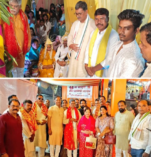 डॉ. महंत ग्राम अर्जुनी पहुंचे, जहां गोंडवाना आदिवासी समुदाय के पवित्र देवस्थल में गुरुमाता तिरुमाय दुलेश्वरी सिदार एवं विधायक रामकुमार यादव की पुत्री शांता देवी के विवाह उत्सव में शामिल हुए। इस अवसर पर सक्ती, जांजगीर, कोरबा, रायगढ़ तथा उड़ीसा प्रदेश से हजारों की संख्या में आदिवासी समुदाय के लोग उपस्थित रहे। विवाह कार्यक्रम में बाजे-गाजे के साथ डॉ. महंत और विधायक रामकुमार यादव का भव्य स्वागत किया गया।