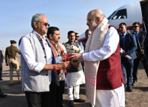 रायपुर। केंद्रीय गृह एवं सहकारिता मंत्री अमित शाह शुक्रवार को रायपुर पहुंच गए। रायपुर एयरपोर्ट पर मुख्यमंत्री विष्णुदेव साय, उप मुख्यमंत्री सहित राज्य सरकार के मंत्रियों और भाजपा के वरिष्ठ नेताओं ने उनका आत्मीय स्वागत किया। केंद्रीय गृह मंत्री अमित शाह छत्तीसगढ़ के तीन दिवसीय दौरे पर हैं, जिसे राज्य की सुरक्षा व्यवस्था और विकास कार्यों के लिहाज से बेहद महत्वपूर्ण माना जा रहा है।