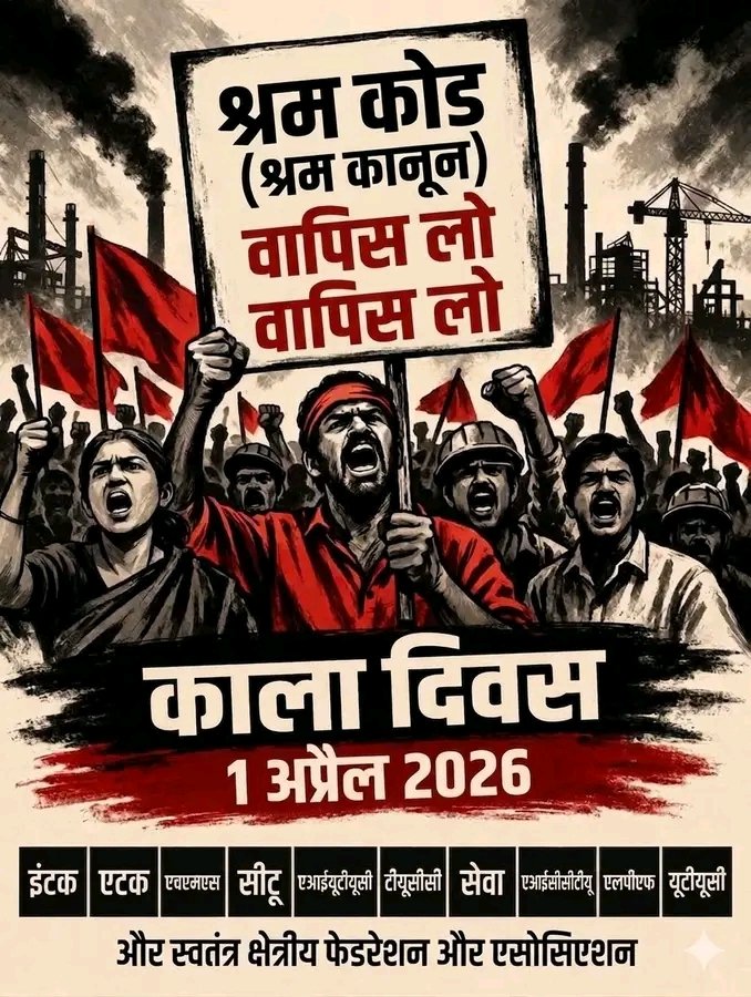 *काला फीता लगाकर श्रमिकों का प्रदर्शन, नए श्रम कोड कानून वापस लेने की मांग*