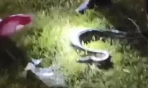 कोरबा। प्रगति नगर स्थित मटका फोड़ मैदान में शनिवार शाम करीब 8 फीट लंबे अजगर के दिखने से क्षेत्र में हड़कंप मच गया। उस समय बच्चे मैदान में खेल रहे थे और आसपास के लोग रोज़ाना की तरह टहल रहे थे। इसी दौरान अचानक मैदान के किनारे झाड़ियों के पास अजगर दिखाई दिया।