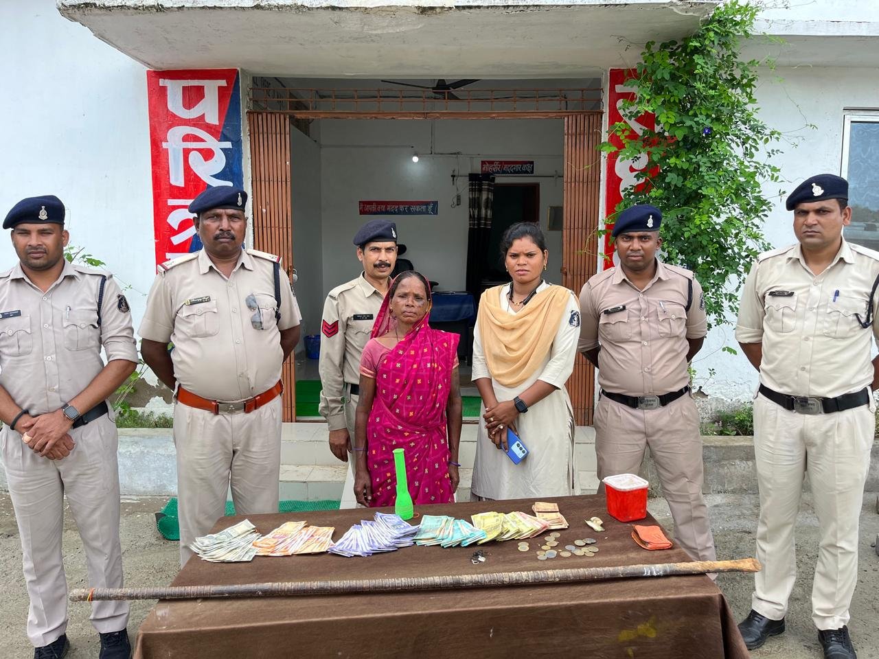 कोरबा. श्रीमान पुलिस अधीक्षक महोदय कोरबा श्री सिद्धार्थ तिवारी, अतिरिक्त पुलिस अधीक्षक महोदया कटघोरा श्रीमती नेहा वर्मा के निर्देशन एवं अनुविभागीय पुलिस अधीकारी श्री पंकज ठाकुर तथा थाना प्रभारी धर्म नारायण तिवारी के मार्गदर्शन मे पुलिस सहायता केन्द्र जटगा प्रभारी धानंजय सिंह नेटी द्वारा प्रार्थी राजेन्द्र यादव निवासी हाथीदर जटगा की रिपोर्ट पर अपराध क्रमांक 303/2024 धारा 331(4),305(2) बी0एन0एस0 कायम कर अज्ञात चोर व चोरी गयी मशरूका नगदी व सोने चांदी के जेवरात का पता तलाश दौरान जरिये मुखबीर से सूचना मिली की गांव की राम बाई बहुत सारा पैसे रखकर गांव मे घुस रही है तथा लोगों को दारू मुर्गा खिला रही है।संदेह है कि राजेन्द्र यादव के घर मे राम बाई चोरी की होगी कि सूचना पर हमराह स्टाफ आरक्षक 691,698, महिला आरक्षक 544 को साथ लेकर संदेही आरोपीया का पता तलाश किया जो हाथीदर जटगा में मिली जिसे पुछताछ किया गया जो दिनांक 28.07.2024 को रात्रि 01:30 बजे लगभग घटना स्थल राजेन्द्र यादव के घर पर अपने पुत्र बबलू उर्फ शिव नारायण और अपचारी पुत्र के साथ मिलकर दिवाल को सब्बल से तोडकर नगदी रकम 70000रू व सोने चांदी के जेवरात की चोरी करना स्वीकार की।
